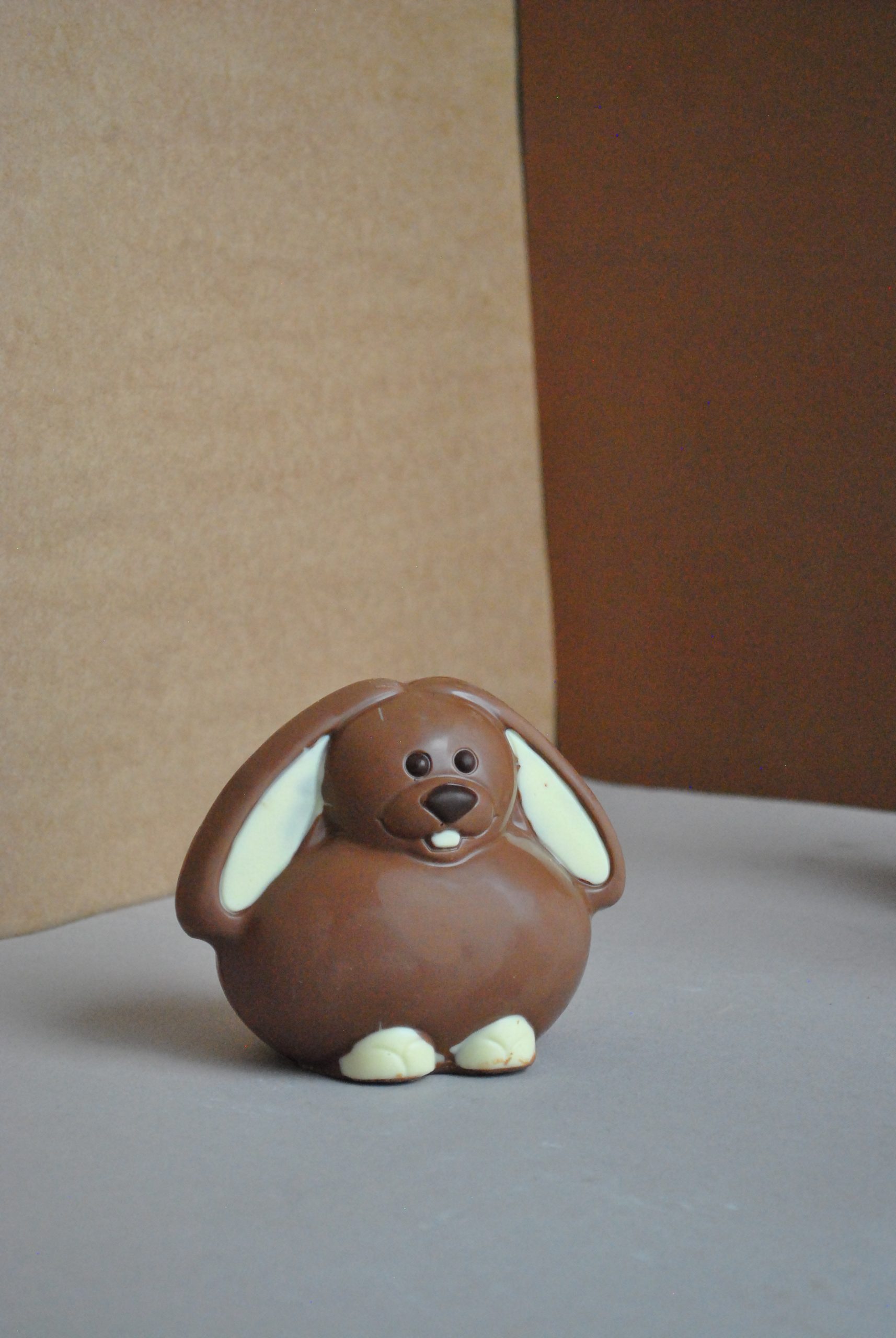 Figura de chocolate con leche, con detalles en chocolate blanco y chocolate amargo. Peso: 110 grs.